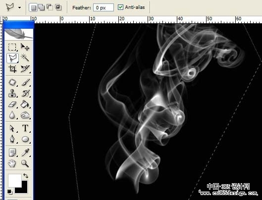 | 3、打开一张烟雾的图像,然后利用多边形套索工具,沿着烟的边缘选起来。然后利用移动工具,把图像拖到文件中(吸烟者)并命名:cig_smoke。 |