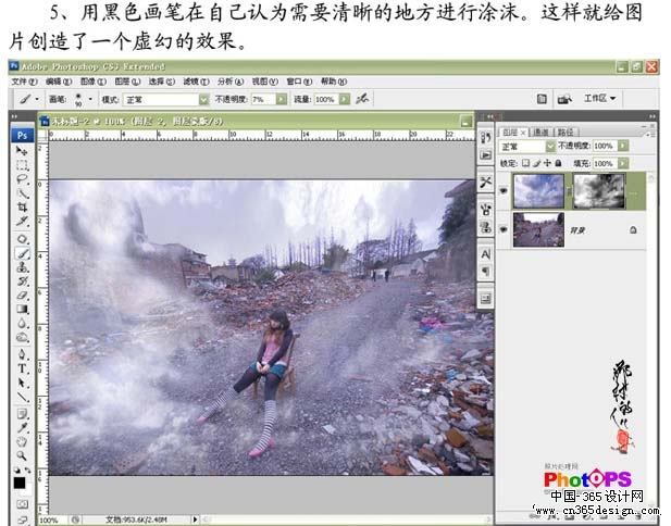 | 5、用黑色画笔在自己认为需要清楚的地方进行涂沫,这样就给图片创造了一个虚幻的效果。 |