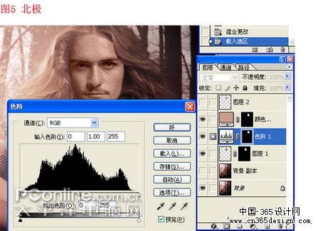 | 5、再次浮动王子的选区,添加一个色阶调整图层,进行亮度上的调节。详细数值要看图的颜色,要不断的调试,使两个图层亮度完美接近。图5