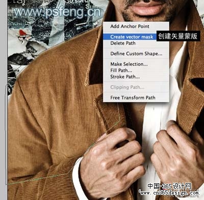 | 4、然后我们右击鼠标,选择创建矢量蒙版。接着我们选中适量蒙板,用钢笔要具直接在里面勾出手下面那一小块.