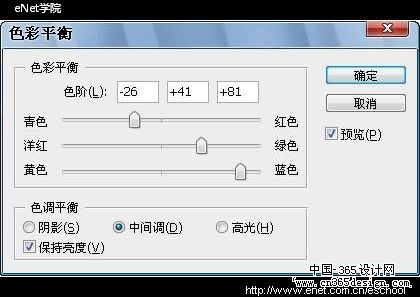 | 2、选择【女孩】图层,按【Ctrl+B】键执行色彩平衡命令,参数设置如下图所示。