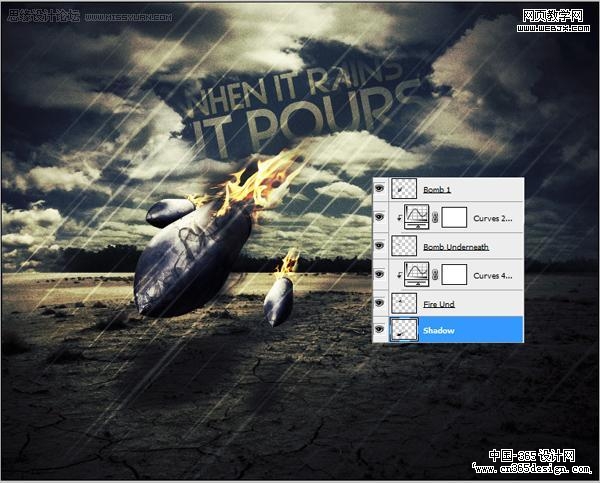 | 33、复制火图层,然后调整图层位置到小飞弹图层之上。 |