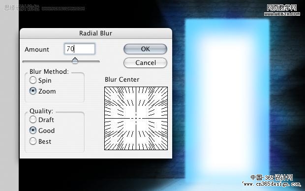 | 14、之后我们用套索工具把门进行处理,之后再调整光芒,这里我们执行径向模糊滤镜。 |