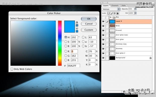 | 21、新建立一个图层,填充颜色,改变不透明度为50%,模式调整为正片叠底。 |