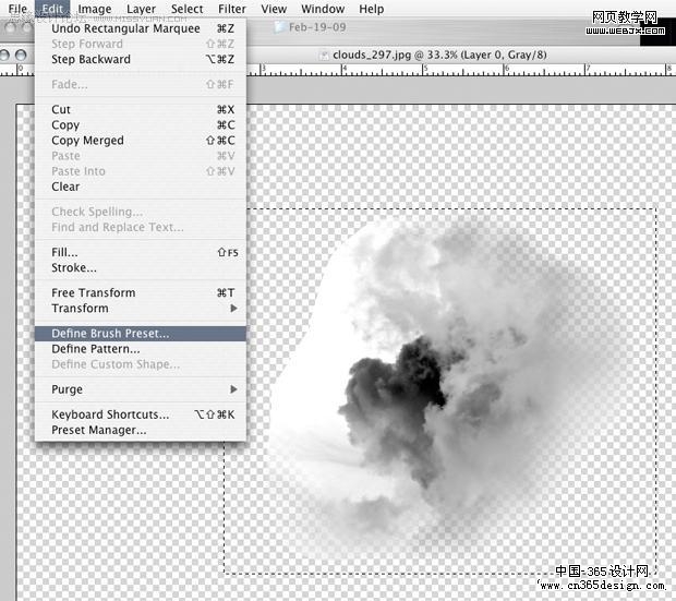 | 6、然后转变为笔刷,选区工具选择,确认用鼠标单击图层1而不是蒙板,然后定义画笔。 |